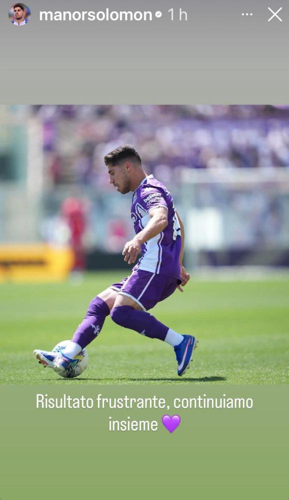 "Risultato frustrante, continuiamo insieme", il tutto con un cuore viola: Manor Solomon attraverso il proprio profilo social commenta così il pareggio raccolto ieri con il Sassuolo a circa 24 ore di distanza dal fischio finale del match. L'israeliano ha espresso tutto il suo rammarico per la mancata vittoria che avrebbe sancito la salvezza, ma ha anche mandato un messaggio di unità in vista di questo finale di stagione. Questa la storia Instagram del calciatore:
