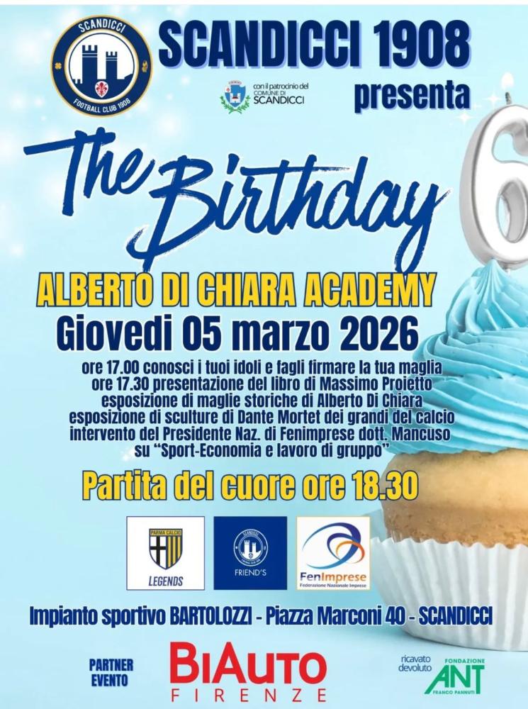 Domani all'impianto sportivo "Bartolozzi" a Scandicci "partita del cuore" alle ore 18.30 tra Legends del Parma, "Friend's dello Scandicci" e la squadra della FenImprese con tanti ex viola, proprio nella settimana di Fiorentina-Parma, due squadre alle quali ha legato l'ex esterno Alberto Di Chiara che organizza l'evento per festeggiare il compleanno della sua Academy. Saranno tanti gli ex campioni in campo o comunque presenti, tra cui l'ex ct Prandelli e allenatore viola Cesare Prandelli, Beppe Iachini, Francesco Flachi, Marco Negri, Aldo Firicano tra gli altri e tante glorie del Parma con Pallotta, Minotti, Dino Baggio, Osio e tanti altri. Atteso anche Federico Cherubini, dirigente del Parma.