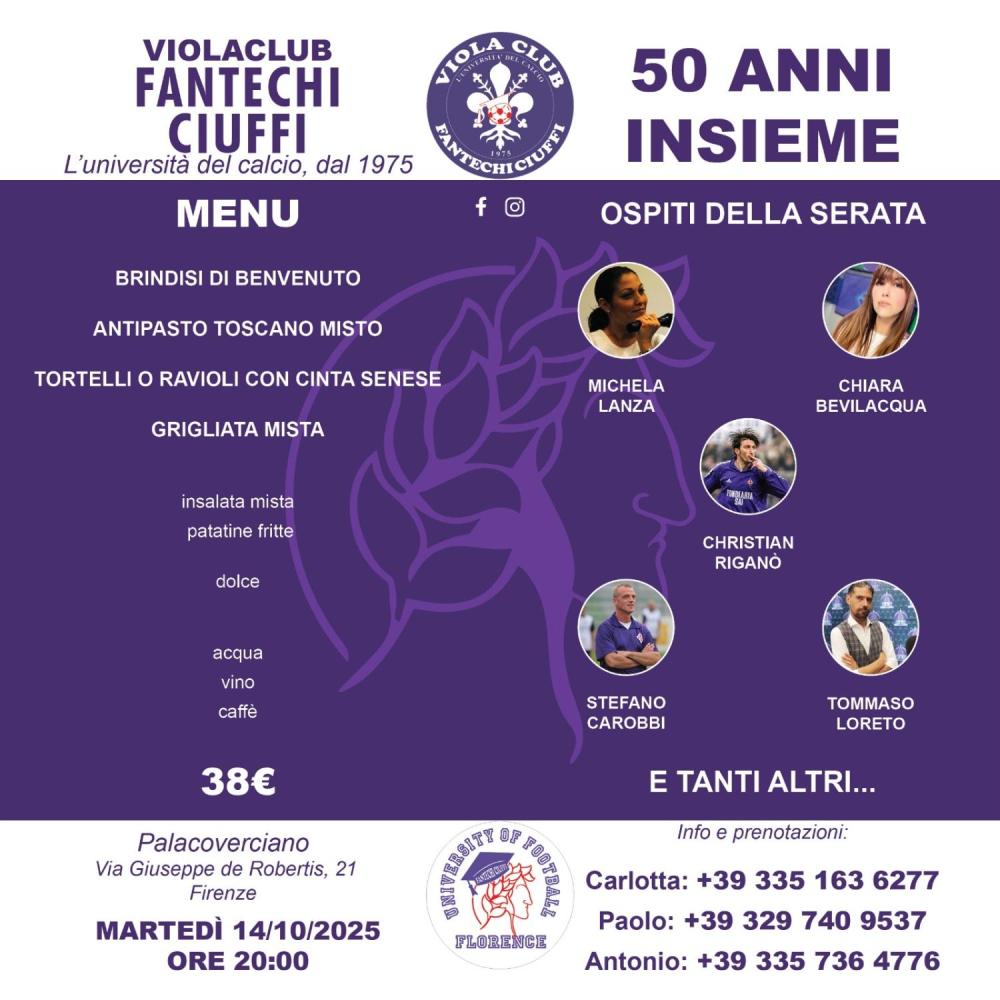Presenti due ex viola come Christian Riganò e Stefano Carobbi, parteciperanno anche il direttore di Radio FirenzeViola Tommaso Loreto e Chiara Andrea Bevilacqua apprezzata conduttrice delle trasmissioni di RFV. Di seguito la locandina dell'evento.