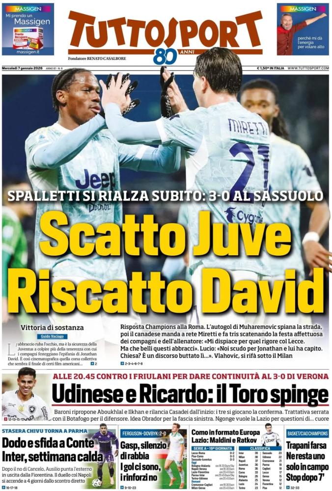 Queste le prime pagine dei maggiori quotidiani sportivi in edicola quest'oggi in Italia.