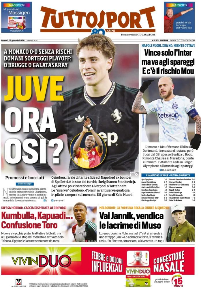 Queste le prime pagine dei maggiori quotidiani sportivi nazionali in edicola questa mattina.