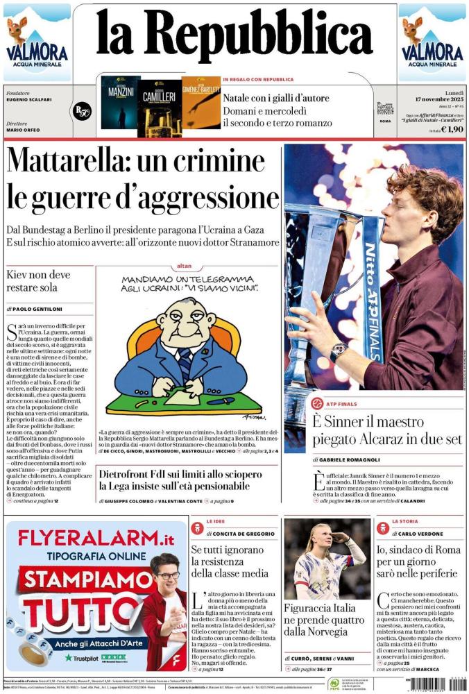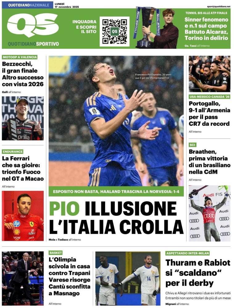 Queste le prime pagine dei quotidiani sportivi in edicola oggi, lunedì 17 novembre 2025.