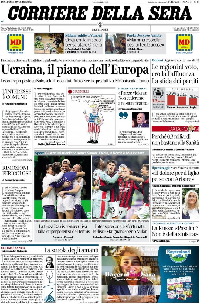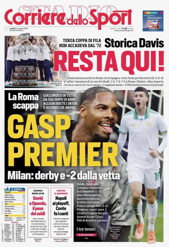Queste le prime pagine dei quotidiani sportivi in edicola oggi, lunedì 23 novembre 2025.