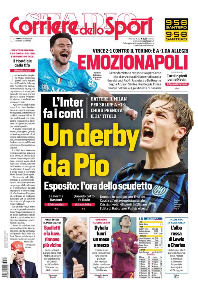 Queste le prime pagine dei maggiori quotidiani sportivi in edicola quest'oggi in Italia.