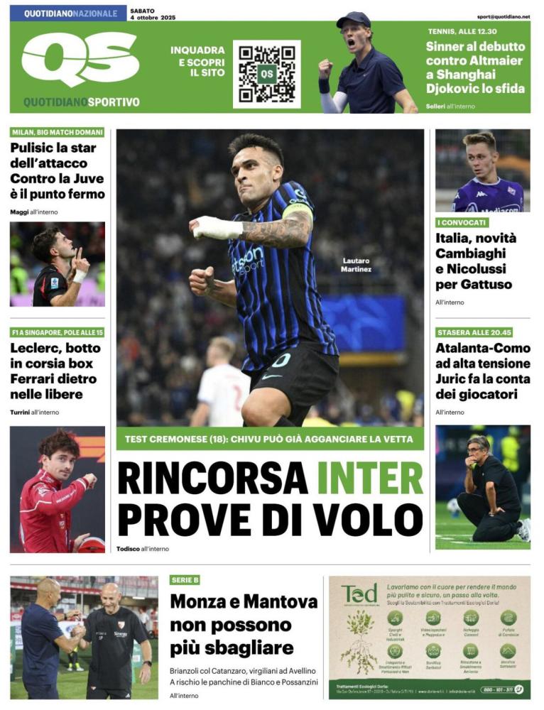 Queste le prime pagine dei quotidiani sportivi in edicola oggi, sabato 4 ottobre 2025.