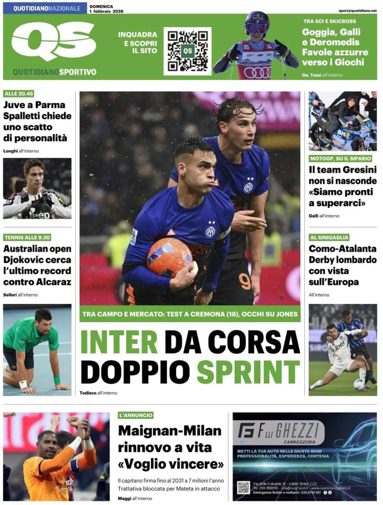 Queste le prime pagine dei quotidiani sportivi di oggi, domenica 1 febbraio 2026.