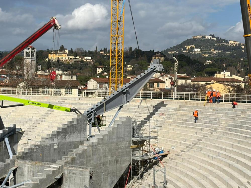 Restyling Franchi, le immagini della trave che sorreggerà la nuova Curva Fiesole