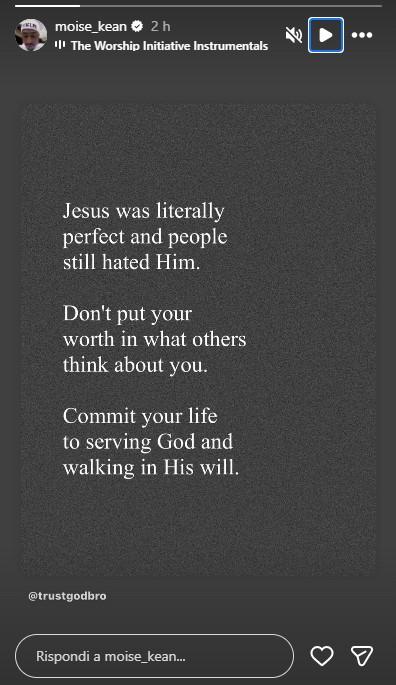 Moise Kean ha pubblicato un post sui propri canali social per togliersi un sassolino ideale dalla scarpa. L'attaccante viola, in questo periodo di difficoltà della Fiorentina e nel quale piovono le critiche diffuse sui giocatori, ha scritto: "Gesù era letteralmente perfetto e le persone continuavano ad odiarlo. Non vivere preoccupandoti di cosa le persone pensino di te. Dedicati a servire Dio e vai avanti nella sua volontà".