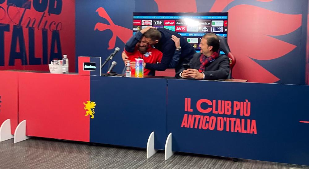 Bella scena al termine di Genoa-Fiorentina: mentre Daniele De Rossi stava parlando in conferenza stampa, Edin Džeko ha fatto irruzione nella sala con un sorriso e un abbraccio caloroso al suo ex compagno di squadra. I due, legati dai ricordi dei tempi condivisi alla Roma, si sono scambiati un bacio affettuoso e qualche battuta davanti ai giornalisti. Di seguito l'immagine scatta da FirenzeViola.it.