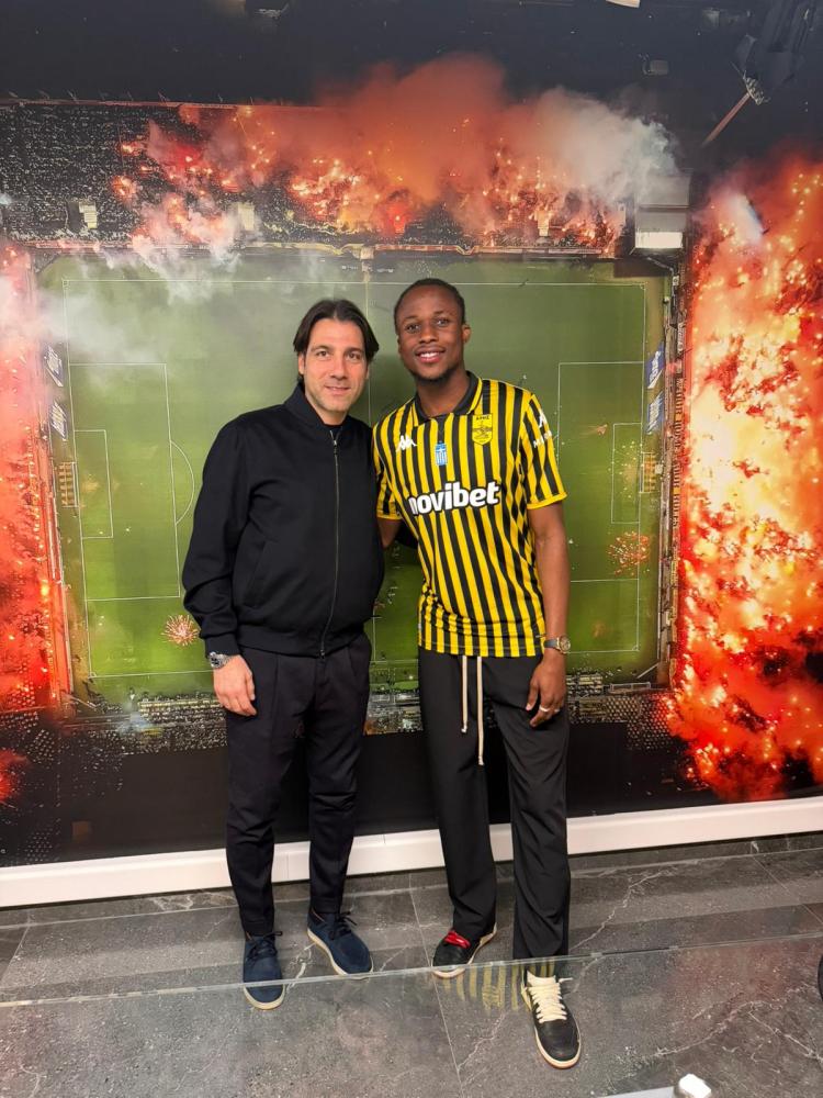Kouame con la maglia dell'Aris Salonicco: l'immagine di Firenzeviola
